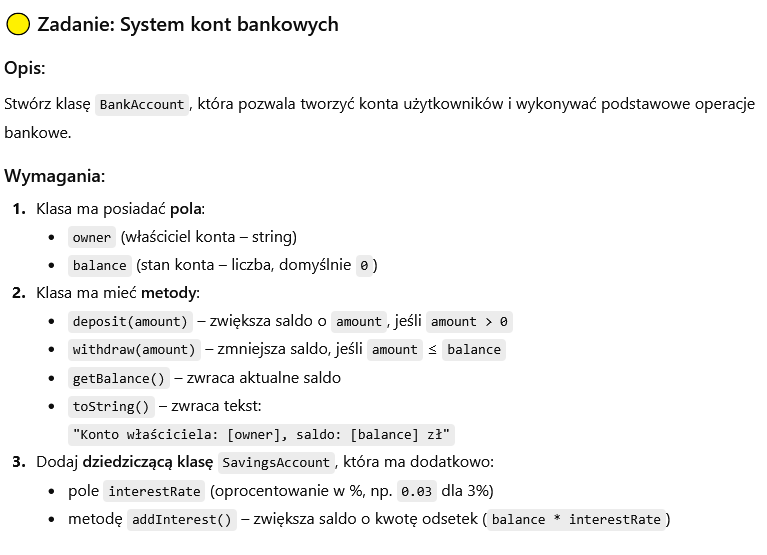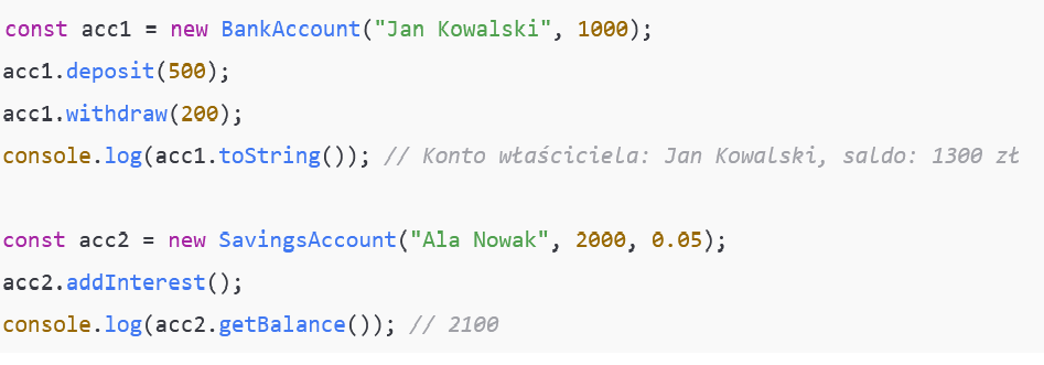 Konto bankowe - tresc zadaniaKonto bankowe - przyklad dzialania w konsoli